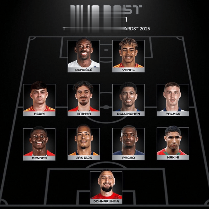 FIFA年度最佳11人: 登贝莱领衔, 亚马尔、贝林厄姆在列